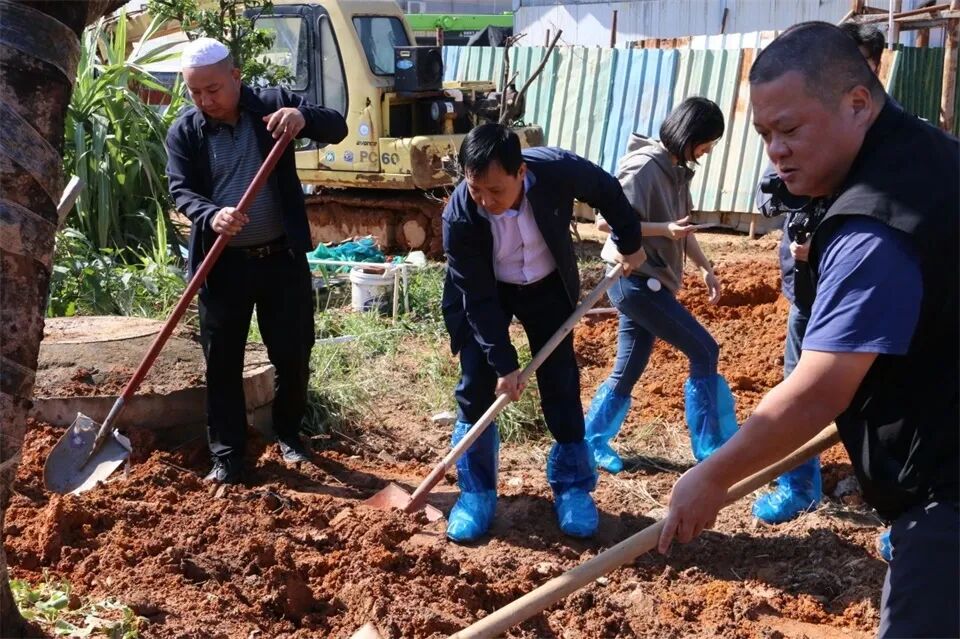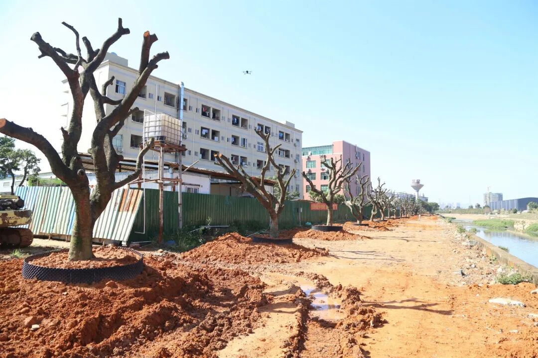 活动现场,大家干劲十足,用心用情挥动铁铲,铲土填坑,为树浇水,默契配合,植下了一棵棵荔枝树,现场一派热火朝天景象。在大家的通力协作下,在大陂海蔡边段种植了荔枝树56棵,寓意为56个民族56棵树,命名为同心林。一棵又一棵树龄超过40年的荔枝树在此“安家落户”。新栽种的树苗迎风挺立,为大朗增添了一抹新绿。
