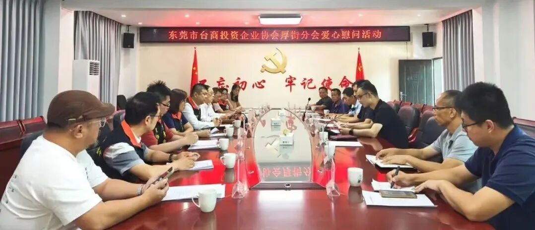 厚街台商分会,厚街慈善爱心会一行首先前往江尾镇乡村振兴服务中心,举办了“东莞市台商投资企业协会厚街分会爱心慰问座谈会”。