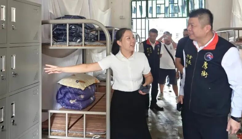 随后,厚街台商分会一行前往江尾镇中学开展爱心助学物资捐赠活动。厚街慈善爱心会共为江尾中学捐赠了100套桌椅、40套学生宿舍双层床、4套储物柜,捐赠学习物资约8万余元。