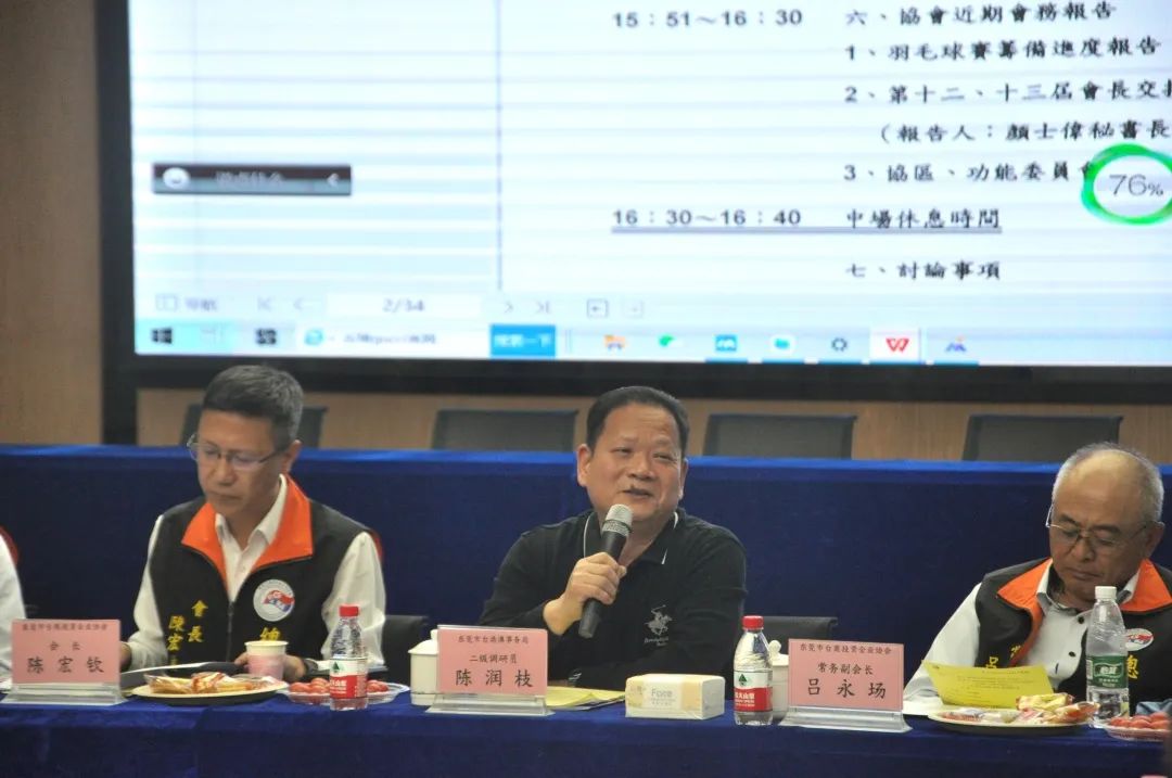 本次会议,针对举办举办上市研讨会、羽毛球赛筹备进度、第十二十三届会长交接感恩晚宴筹备进度、协区与功能委员会工作计划做了报告。还对**分会评选、协会30周年庆召集人推选、推动协会财源开发等事项进行了研讨。