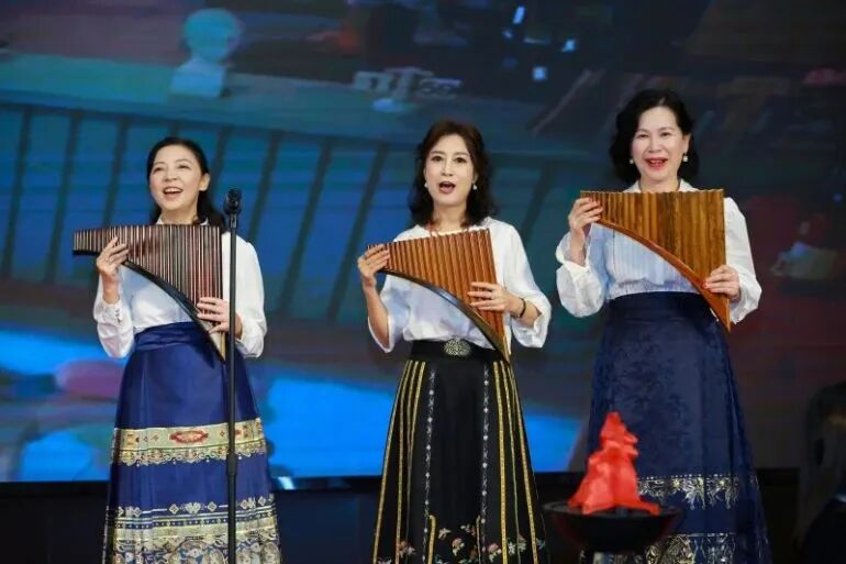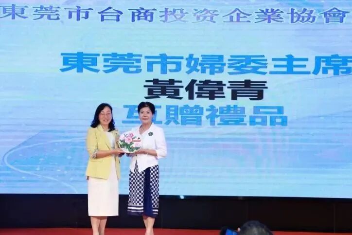 省妇委黄月美会长、广州妇委会林彩霞会长(赞助节目)、深圳妇委会游淑燕主委,台胞台属陈超平副会长带领的**团队,互赠礼品;