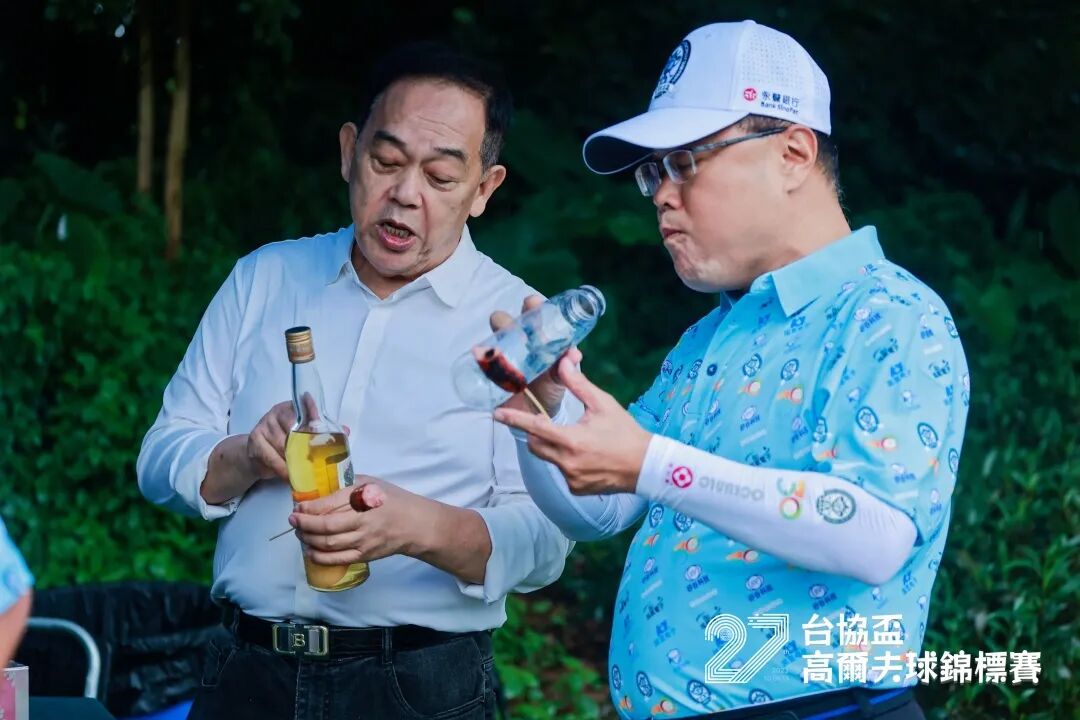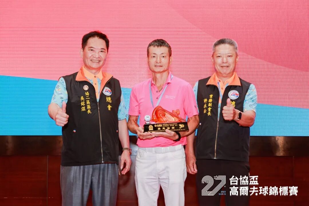 台协杯高尔夫锦标赛的会旗由陈宏钦会长、吴铭煜区长交接给协三区吴金田副会长(代表陈柏尧区长)手上。