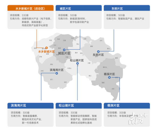以先启动的水乡新城片区为例,产业园区的引商方向以战略性新兴产业为主,包括新一代电子信息、新能源、高端装备等,助力传统优势产业数字化转型。
