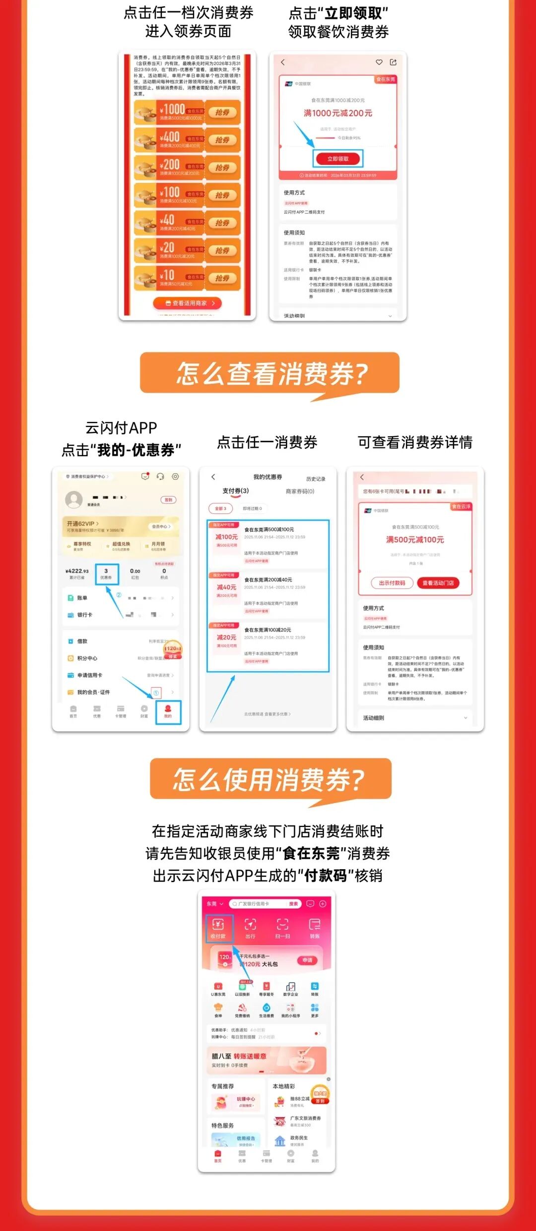 领券方式:抖音搜索#食在东莞,点击#食在东莞消费券活动入口,进入活动主会场,选择相应消费券抢额。(领券前需要完成实名认证)