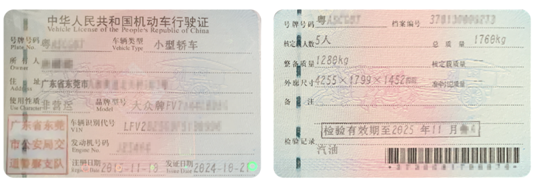 《机动车行驶证》正、副页