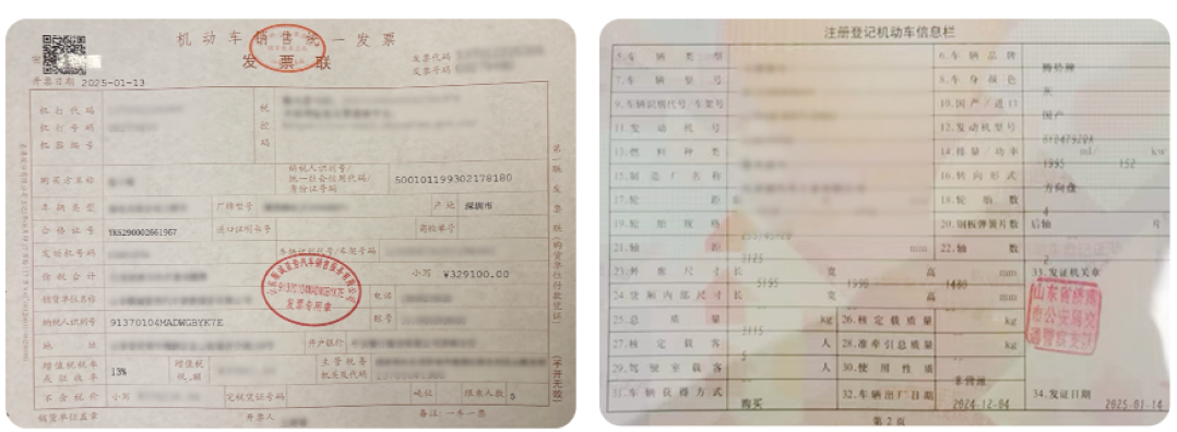 *机动车登记证书(发证日期为2025年11月3日至2026年5月10日期间,且不早于发票开具时间)。