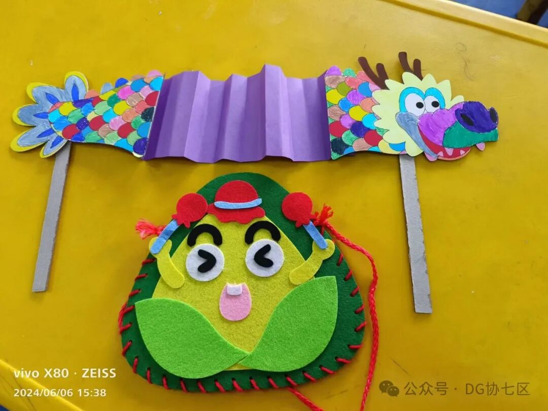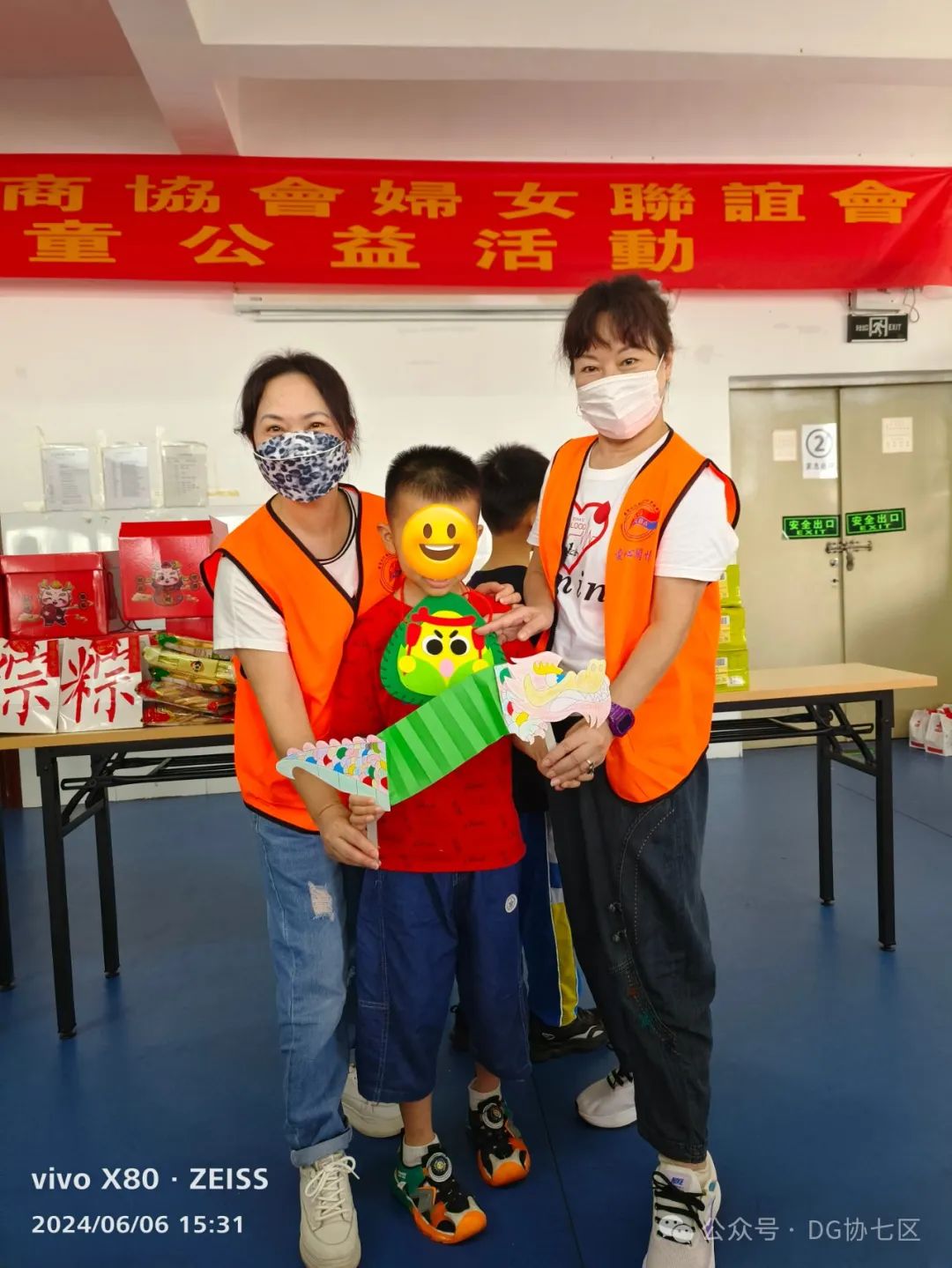和孩子劳作互动环节,活动负责人协七区副秘书长王怡文女士,在台上卖力用生动活泼的音调和肢体动作吸引孩子们的注意力,和在场妇联姐妹一同联手协助孩童一起完成手作作品。孩子们认真涂色,努力尝试,不一会功夫开心完成舞龙和粽子背包。