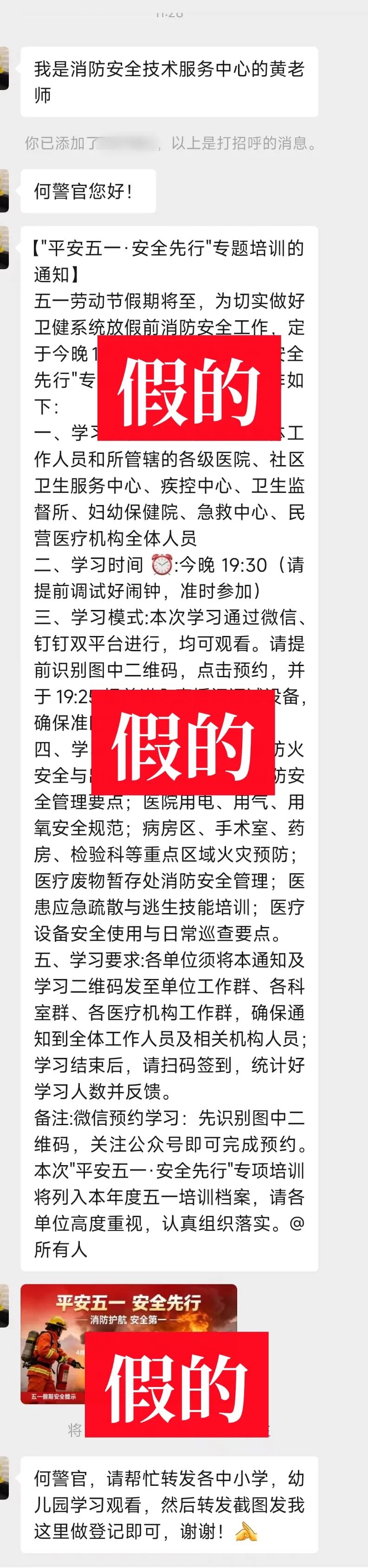 2024年9月27日,山西晋中消防接到某超市老板反映称:有不法分子冒充消防人员采购。对方自称是大队的工作人员,需要采购50盒梅林牛肉罐头、100斤羊肉、100斤排骨及其他一些物资,让其抓紧时间准备所需物资。由于采购量大,超市老板对此感到疑惑,并立即联系了平遥县消防救援大队进行求证核实。经仔细核实确认,大队根本没有购买此批物资,且该单位并无此人,所谓的采购清单也是伪造的,所幸店主及时发现,未对其造成经济损失。