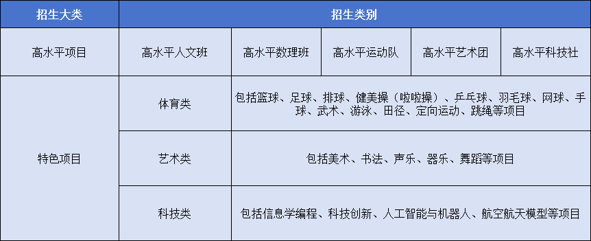 高水平项目:各招生学校根据公示确定后的学校测试成绩排名择优录取。