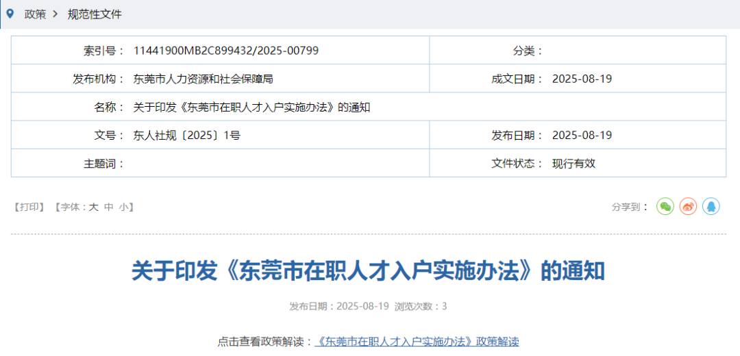 据了解,东莞市人才入户政策自2020年9月实施以来,共核准学历、职称、技能等不同类型的人才入户资格9.5万人,为产业升级、科技创新等提供了智力支持,有效推动经济社会高质量发展。现行人才入户政策于2025年8月底到期,修订后的政策将于2025年9月1日起实施。