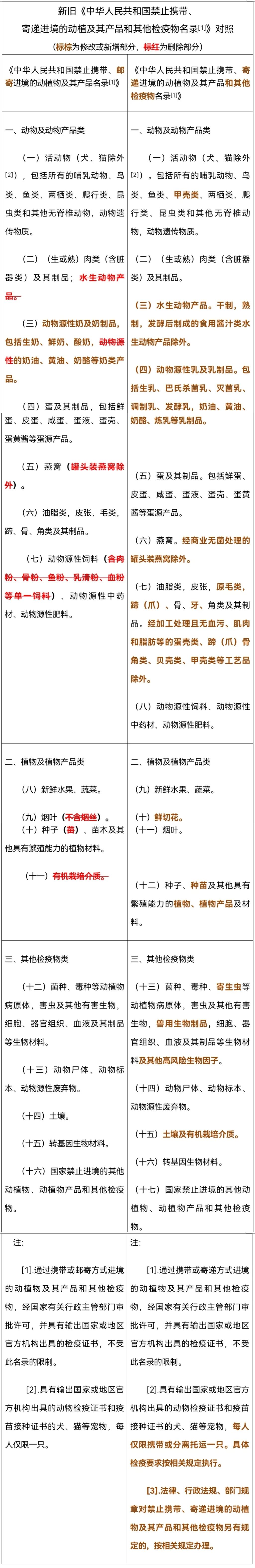 四是与其他法律法规有效衔接。备注新增了“3.法律、行政法规、部门规章对禁止携带、寄递进境的动植物及其产品和其他检疫物另有规定的,按相关规定办理。”