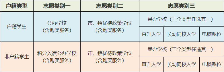 志愿填报是以学生户籍类型为基础,不同户籍类型的学生都最多可以填报三个类别的志愿,但志愿类型略有不同。