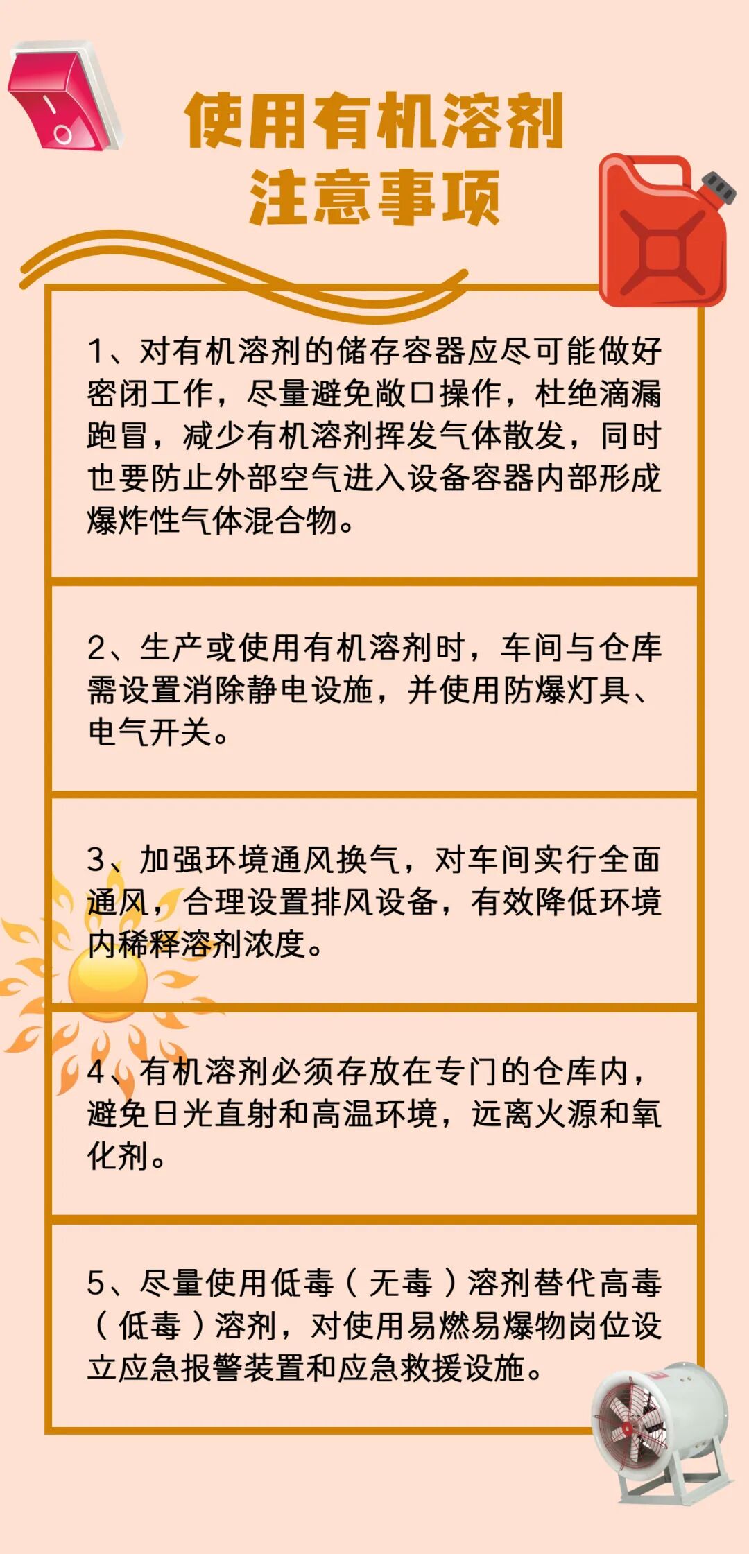 3.通风排气系统不符合要求。在密闭或半密闭的空间内使用有机溶剂,没有设置符合规范要求的通风排风设备,导致可燃气体聚集,容易发生事故。