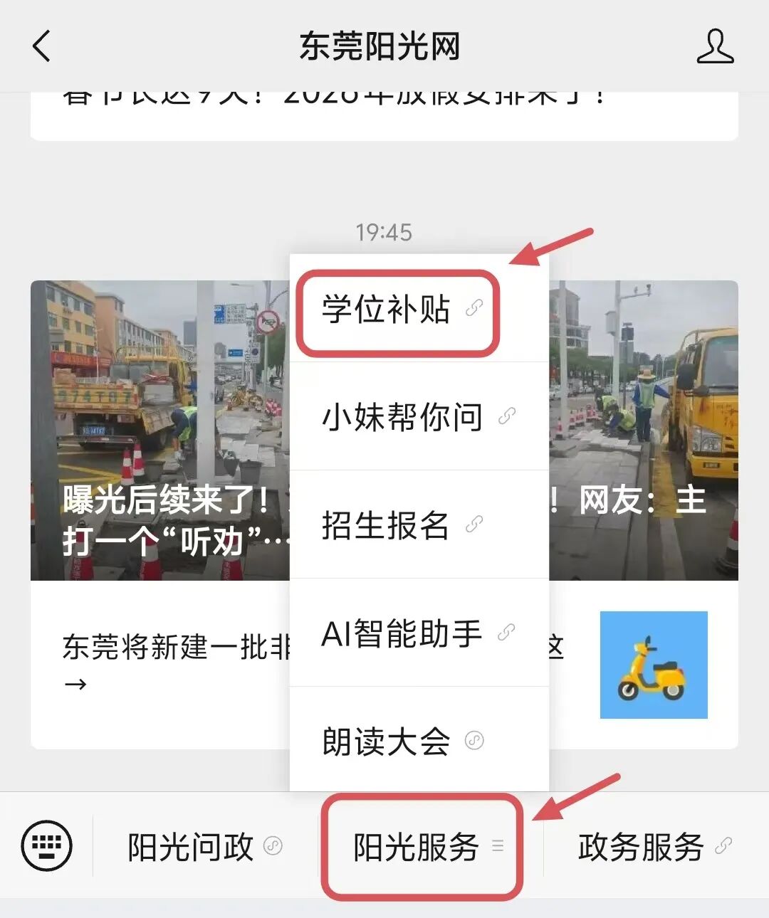 (11月5日10:00开通)手机微信版:关注“东莞阳光网”微信公众号微信公众号号,在微信后台菜单栏,点击“阳光服务”—“学位补贴”栏目
